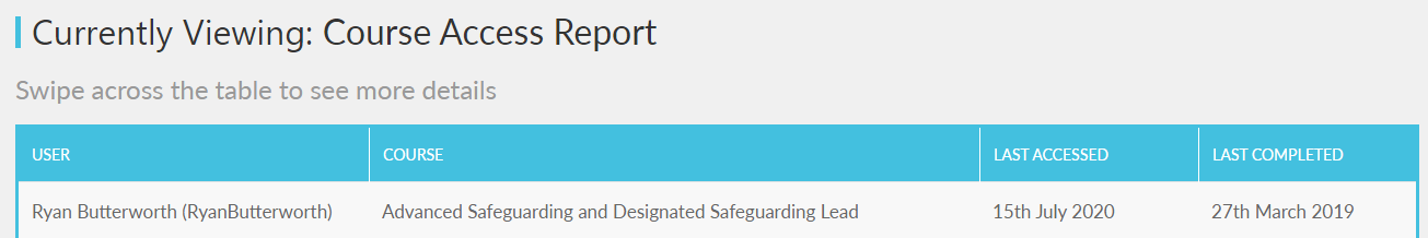 If the 'Last Completed' box shows 'Never' - this means the user is still in the process of reading through the course.